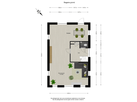 Via de zij-entree zijn de gang, garderobe, meterkast en het toilet bereikbaar. De royale woonkamer met open keuken heeft een oppervlakte van circa 59 m² en wordt standaard voorzien van een keuken inclusief apparatuur (t.w.v. € 12.500 van Jansen Totaal Wonen). Aansluitend liggen de bijkeuken en een ruime slaapkamer met eigen badkamer. Deze indeling is perfect voor comfortabel wonen op de begane grond. Liever een andere indeling? Er zijn meerdere mogelijkheden.