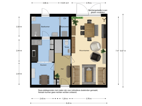 - 63 m² (7,00 meter diep en 9,00 meter breed)
