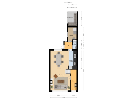 - 138 m² (25,00 meter diep en 5,80 meter breed)