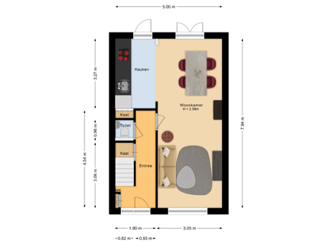 - 41 m² (7,85 meter diep en 5,28 meter breed)