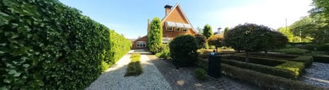 De fraai aangelegde voortuin sluit perfect aan bij de stijl van de woning. Aan weerszijden bevinden zich royale opritten, waardoor er meer dan voldoende ruimte is voor meerdere auto's, een camper, caravan of boot – zonder dat dit afbreuk doet aan de esthetiek van het perceel. De voordeur, met zijn originele details, ademt karakter. Een charmant detail: het authentieke melkdeurtje, een knipoog naar vroegere tijden toen de melkboer hier zijn flessen afleverde.