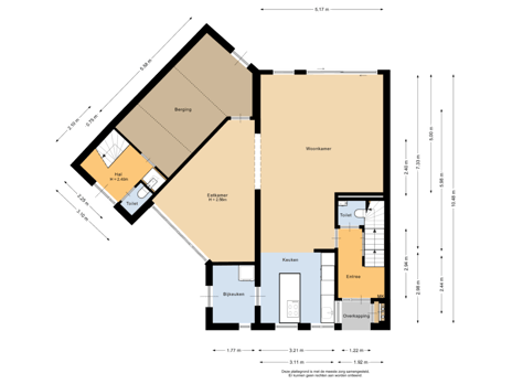- 61 m² (8,22 meter diep en 7,38 meter breed)