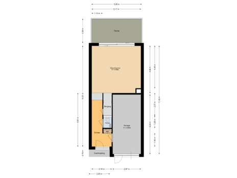 - 13 m² (2,54 meter diep en 5,26 meter breed)