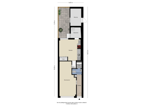 - 11 m² (5,19 meter diep en 2,10 meter breed)