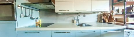 Entree, hal met meterkast en toegang tot alle vertrekken. De woning beschikt over een lichte woonkamer met een open keuken, welke is uitgerust met inbouwapparatuur zoals een koelkast, 4-zones inductiekookplaat, afzuigkap, vaatwasser en een oven. Alles wat u nodig heeft om uitgebreid te koken of juist snel een maaltijd te bereiden, is binnen handbereik. Daarnaast is er een praktische, afgesloten ruimte met plaats voor de wasmachine, droger en opstelplaats van de elektrische boiler (80L) én is er extra bergruimte, ideaal om de woning netjes en georganiseerd te houden. Dankzij de grote raampartij in de woonkamer en het Franse balkon geniet u hier van een charmant uitzicht over de haven, waardoor de ruimte een ontspannen sfeer heeft. De slaapkamer van ca. 11 m² is gelegen aan de galerijzijde en ligt aan de rustige achterzijde van de woning. De slaapkamer is voorzien van een inbouwkast met schuifdeuren. De badkamer beschikt over een inloopdouche, wastafelmeubel met verlichte spiegel en extra plankjes voor de dagelijkse essentials.