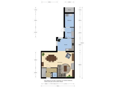 - 262 m² (37,00 meter diep en 7,00 meter breed)