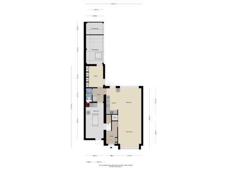 Deze woning is gemeten volgens de Meetinstructie. De Meetinstructie is gebaseerd op de NEN2580. De Meetinstructie is bedoeld om een meer eenduidige manier van meten toe te passen voor het geven van de gebruiks-oppervlakte. De Meetinstructie sluit verschillen in meetuitkomsten niet volledig uit, door bijvoorbeeld interpretatieverschillen, afrondingen of beperkingen bij het uitvoeren van de meting.
