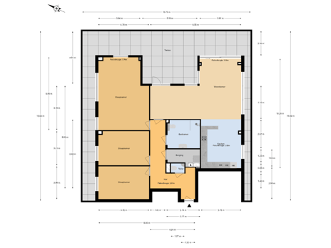 - 67 m² (13,33 meter diep en 5,00 meter breed)