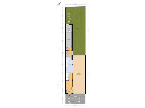 - 90 m² (15,00 meter diep en 6,00 meter breed)