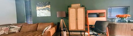 Aan de voorzijde van de woning bevindt zich een derde slaapkamer welke momenteel in gebruik is als werkruimte. Vanuit deze kamer bereikt u via een vaste trap de zolderverdieping.