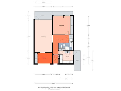 Dit type appartement heeft een 2e balkon die bereikbaar is vanuit de keuken.