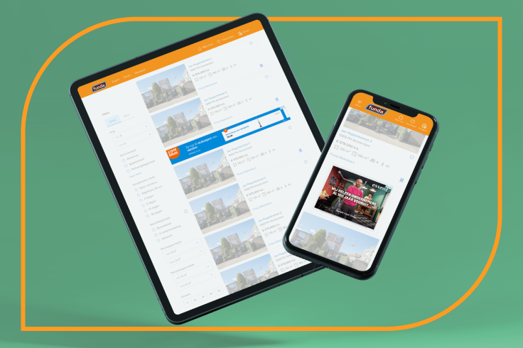 Met display advertising is je campagne zichtbaar op prominente plekken op funda. Ga voor opvallende IAB-posities op de homepage, zoekresultatenpagina of objectpagina, of kies voor native posities die naadloos aansluiten op funda-content.