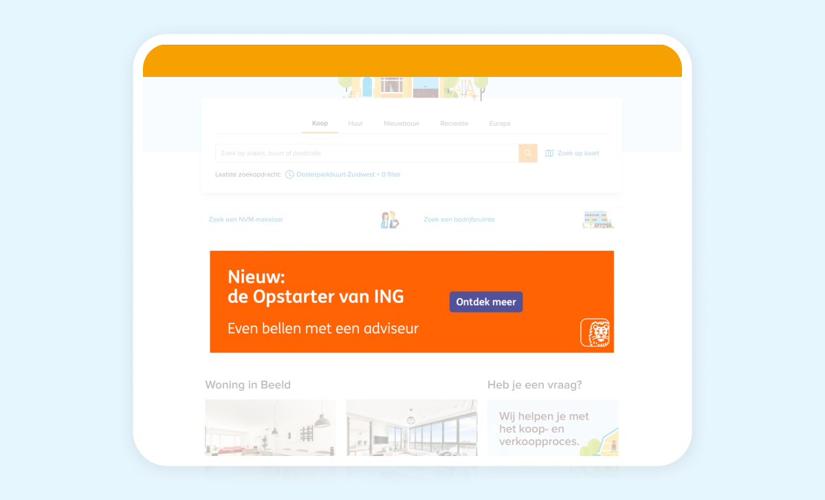 Met display advertising is je campagne zichtbaar op prominente plekken op funda. Ga voor opvallende IAB-posities op de homepage, zoekresultatenpagina of objectpagina, of kies voor native posities die naadloos aansluiten op funda-content.