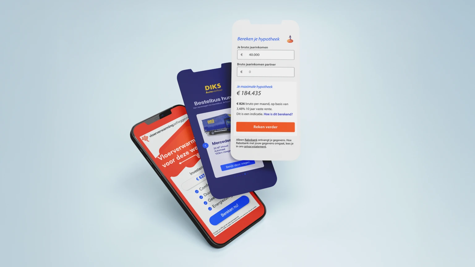 Zijn collega Jim Hazeleger, New Business Lead bij Weborama, geeft een voorbeeld: ‘Stel, je verkoopt houten vloeren. Dan kunnen we met behulp van Rich Media in de advertentie direct laten zien wat het kost om de vloer in een specifiek huis te vervangen, op basis van het aantal vierkante meters. Ook bij een uitbouw kunnen we tonen wat de investering zou zijn. Zo wordt de advertentie persoonlijk en concreet. Normaal zou je hiervoor een offerte aanvragen, maar nu sla je die stap over.’