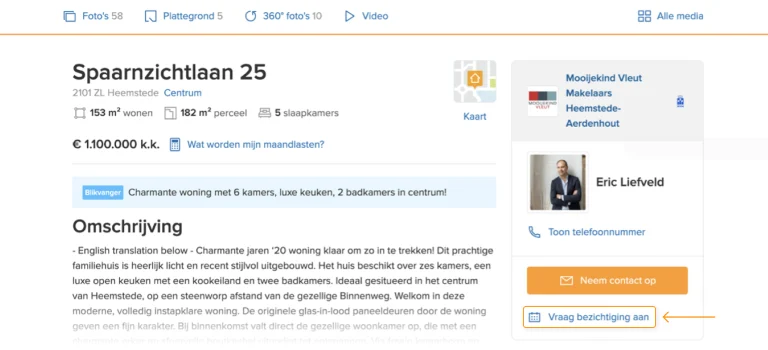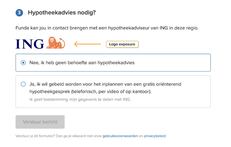 Deze serieuze zoekers willen we gericht targeten. Wesley: ‘Tijdens hun zoektocht filteren funda-bezoekers op hun wensen en komen ze bij een bepaalde woning uit. Op deze objectpagina kunnen ze een bezichtiging aanvragen en aangeven of ze interesse hebben in hypotheekadvies.’