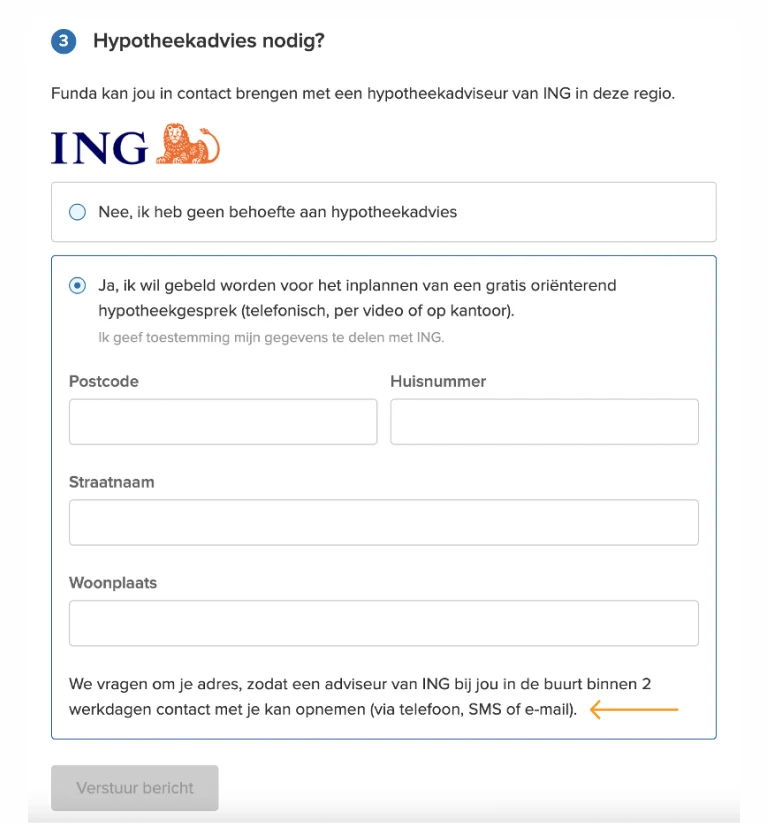 Deze serieuze zoekers willen we gericht targeten. Wesley: ‘Tijdens hun zoektocht filteren funda-bezoekers op hun wensen en komen ze bij een bepaalde woning uit. Op deze objectpagina kunnen ze een bezichtiging aanvragen en aangeven of ze interesse hebben in hypotheekadvies.’