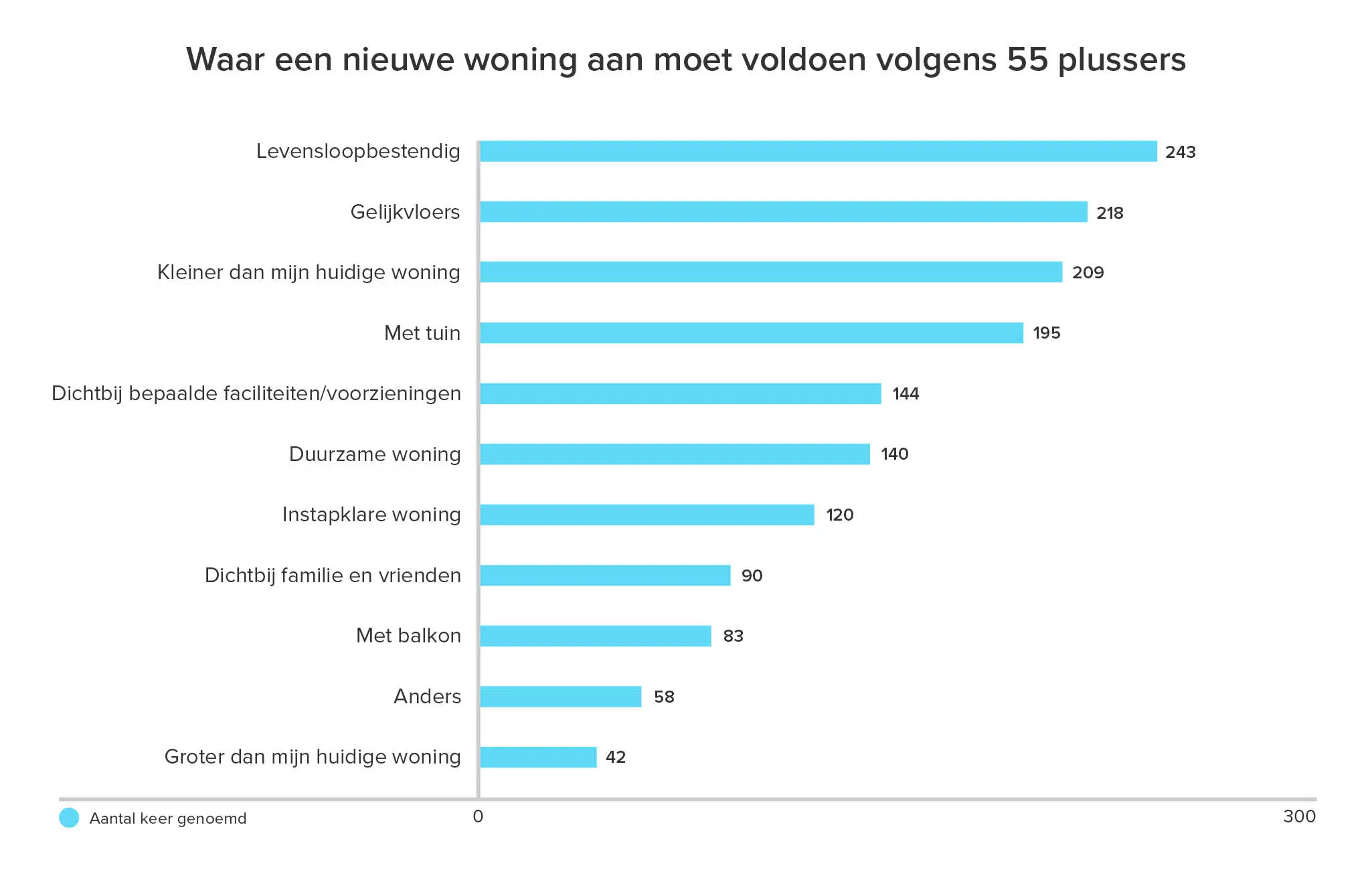 Qua woonwensen geven 55-plussers vooral aan dat de nieuwe woning levensloopbestendig moet zijn, gelijkvloers, kleiner dan de huidige woning en het liefst ook met tuin.