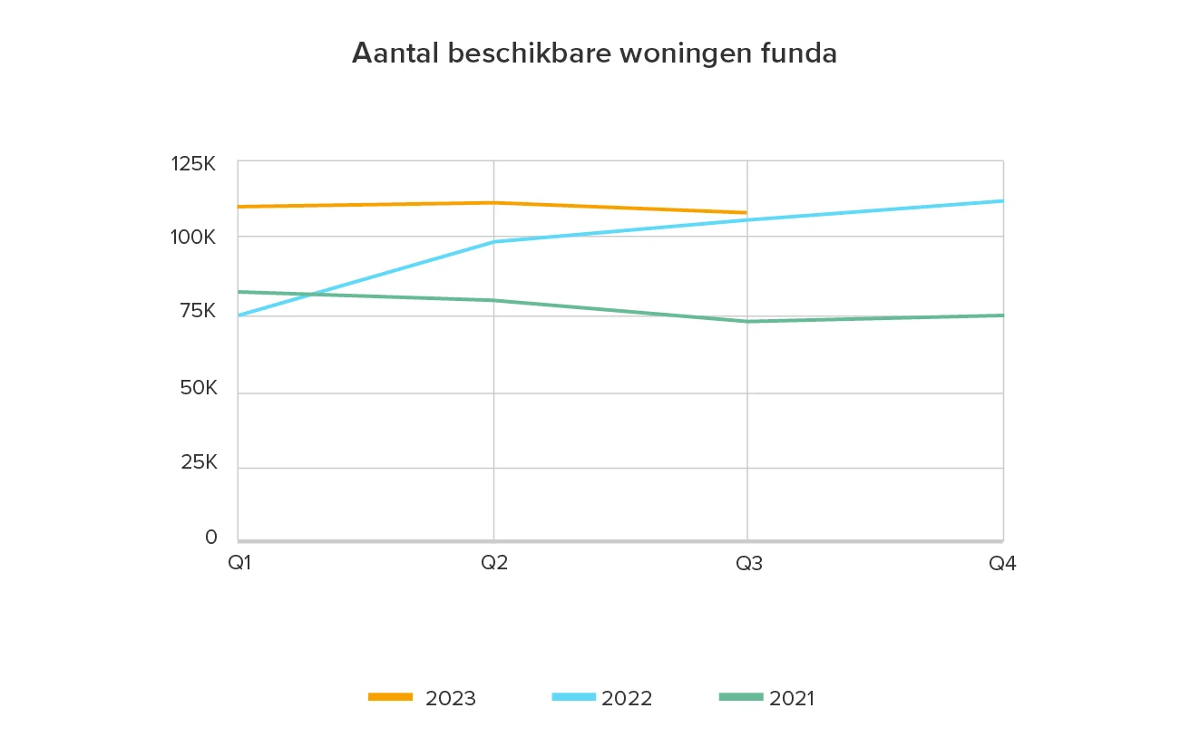 Het blijkt dat weer meer ondervraagden zich voorbereiden op een mogelijke biedingsstrijd. Meer dan een derde (32%) van de kopers en verkopers verwacht dat overbieden de komende maanden de norm zal zijn. Waar een half jaar geleden slechts 12% van de respondenten een overbieding verwachtte. Dit wordt ondersteund door berichtgeving van makelaarsvereniging NVM, die in het derde kwartaal zagen dat 45% van de verkochte woningen boven de vraagprijs werd verkocht. Deze stijging kan verband houden met de perceptie van woningzoekenden over het aanbod dat beschikbaar is. 60% van de respondenten vindt dat er momenteel een beperkt aanbod is. Dat is meer dan in het vorige kwartaal, toen dat nog 54% was. Dit is nog steeds een daling ten opzichte van 2022, toen steevast meer dan 80% van de ondervraagden aangaf dat er te weinig aanbod was.
