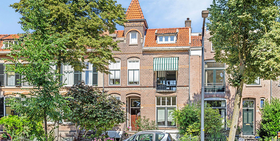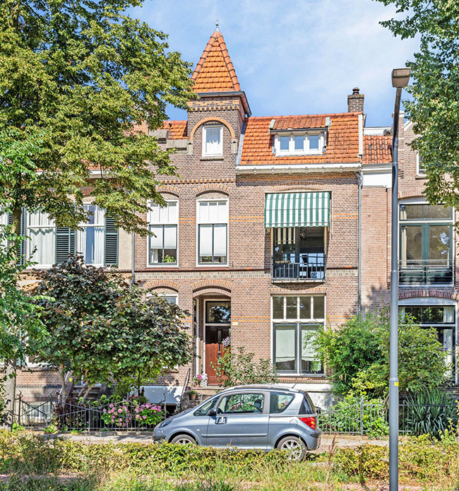 Gelegen in een beschermd stadsgezicht, biedt deze benedenwoning uit 1909 met Jugenstil-elementen een grote tuin, berging en unieke kenmerken zoals siermetselwerk, gietijzeren hekwerk, en een opvallend torentje.