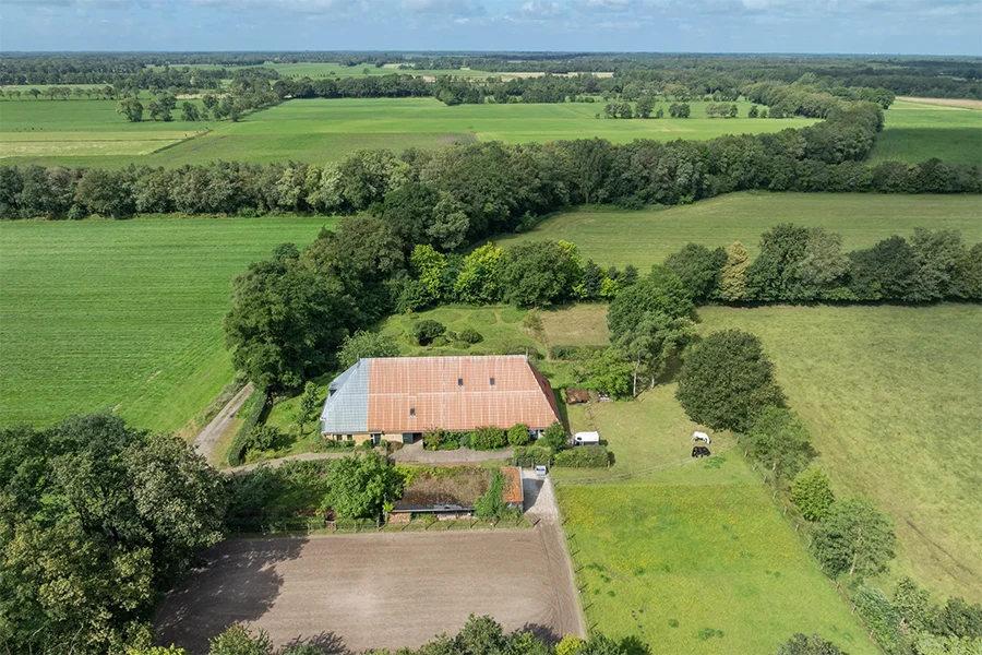 Verscholen tussen houtwallen en omringd door groen rijd je via een laan langs oude bomen naar deze afgelegen woonplek. Deze voormalige oude boerderij is in 2001 volledig herbouwd, met behoud van authentieke elementen. En hopelijk is dat het enige dat is blijven hangen.