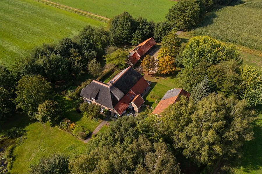 Dwaal langs de oprijlaan tussen oude eiken: aan het einde vind je een woonboerderij uit 1858 omgeven door rust, ruimte en geschiedenis. De authentieke schuur met eiken gebinten, kannenschroten vloer en oude dakpannen roept beelden op van vervlogen tijden.