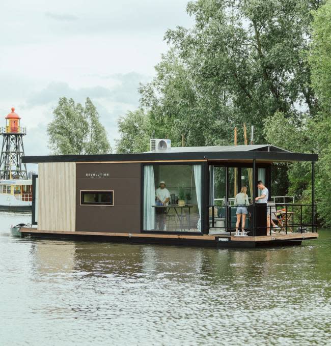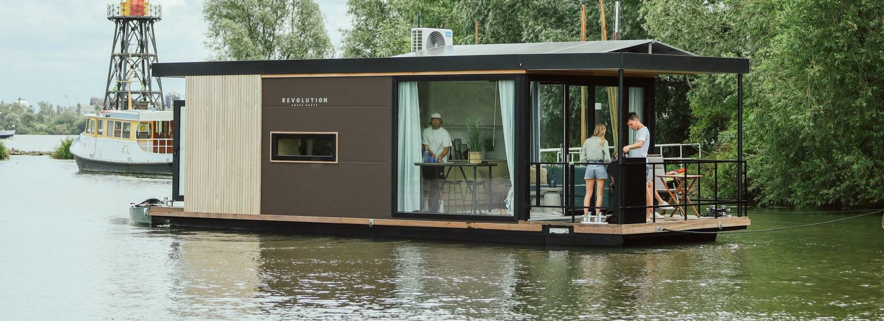 Gooi het over een andere boeg en ga niet voor bakstenen op één adres, maar voor een huisboot waarmee je ook op vakantie kunt. Met 32 m² is de woonruimte beperkt, maar daar krijg je wel onmetelijk veel buitenruimte bij.