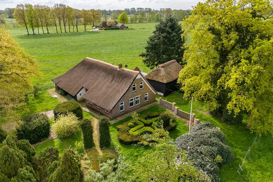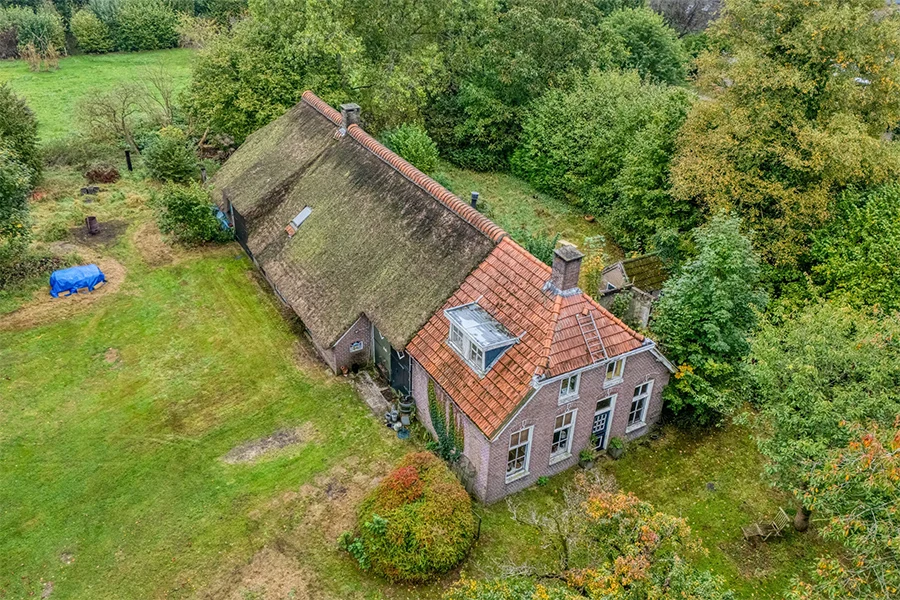 Nog zo’n rietgedekte parel op de grens van Drenthe en Overijssel: deze woonboerderij in Linde. Tijdens het klussen word je omringd door groene vergezichten. En de glasvezelaansluiting? Die kun je alvast afvinken.
