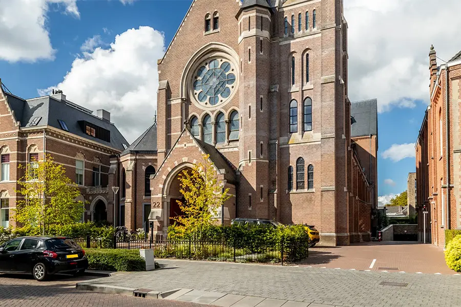 Midden in het hart van Breda staat dit iconische kerkgebouw. Op de tweede en derde verdieping vind je een extravagant loft-appartement met panoramisch uitzicht over park Boeimeer, met een raam zo bijzonder dat je ernaar blijft kijken.
