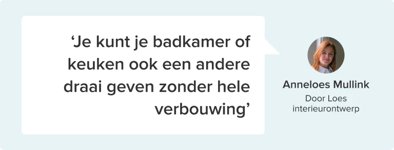 Mullink: ‘Sommige mensen zien van een koop af omdat ze de keuken én de badkamer lelijk vinden en niet het budget hebben om beide op te knappen. Zonde, want je hebt honderden bedrijven die je kunnen helpen om een andere draai aan je keuken of badkamer te geven zonder dat daar een hele verbouwing voor nodig is. Zo kun je je keuken- of badkamerkasten laten wrappen (beplakken met plakfolie, red.) en voorzien van nieuwe greepjes. Oude tegels kun je oververven met tegellak. Ik heb dat laatst voor een klant gedaan en dat maakt een wereld van verschil.’