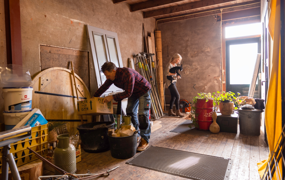 Over de indeling van de twee grote schuren zijn ze nog niet helemaal uit. De begane grond wordt het domein van Jeffrey; daar komen zijn bouwspullen en kan hij straks klussen. Boven hebben ze op dit moment meubels opgeslagen. Sonja: ‘Maar we zouden er ook een bed and breakfast van kunnen maken. Of een soort winkeltje waar we in de vorm van een garage sale spullen kunnen verkopen.’ Jeffrey: ‘We zeiden toch dat de mogelijkheden eindeloos waren?’