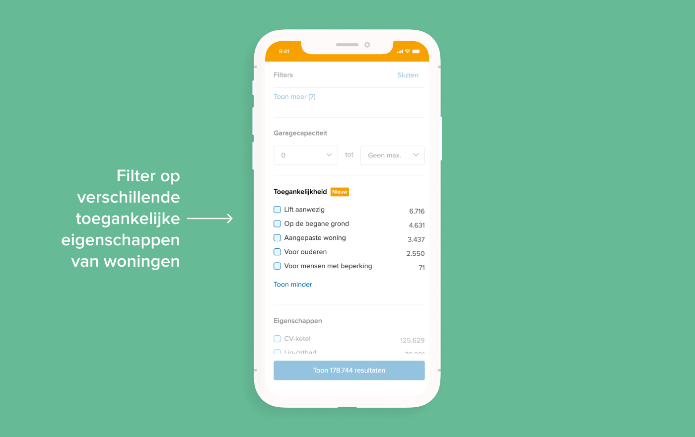 Met dit nieuwe filter maken we het makkelijker om specifiek te zoeken naar toegankelijke woningen in het huizenaanbod op funda.