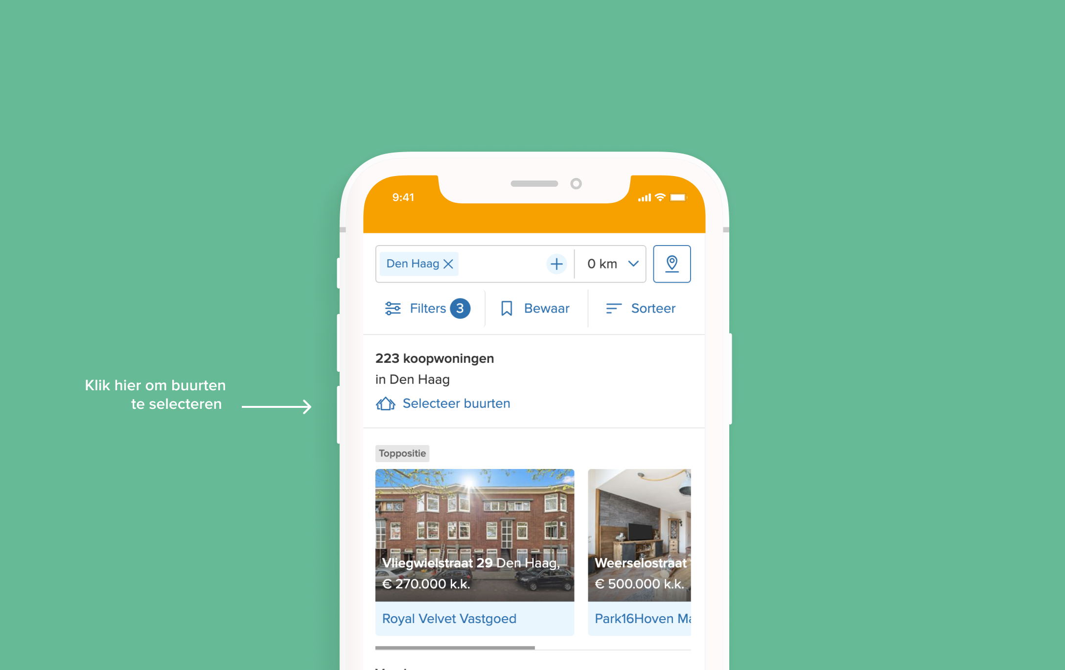 Voorheen kon je in specifieke buurten zoeken door ze handmatig in te voeren. Als je nu op een plaats zoekt, zie je via ‘Selecteer buurten’ in één overzicht op welke buurten je in dit gebied kunt zoeken. Je kunt zoveel buurten aanvinken als je wilt. Handig: sla je zoekopdracht op en schakel in dat je een e-mail krijgt als er nieuwe huizen online komen.