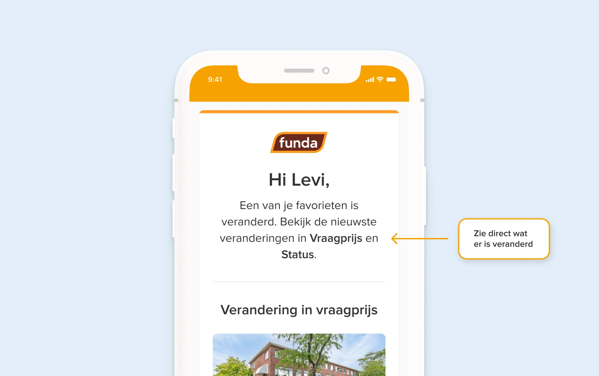 We zijn druk bezig met het vernieuwen van je favorieten, de e-mail waarin je de updates ontvangt van huizen die je opgeslagen hebt. Behalve een nieuwe look verandert ook de frequentie van deze e-mails. In plaats van een aparte e-mail voor elke verandering in status, krijg je nu maximaal één e-mail per dag met daarin álle wijzigingen van jouw favorieten. Je krijgt de e-mail op het vertrouwde tijdstip in de ochtend.
