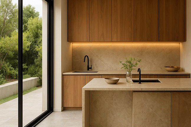 Deze stijl wordt steeds vaker doorgetrokken naar de rest van het interieur, ziet Danielle. ‘De keuken wordt zo meer één geheel met de woon- of eetkamer. Door kleuren en materialen op elkaar af te stemmen, ontstaat eenheid en creëer je meer rust in huis.’