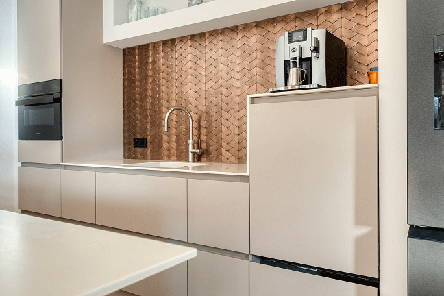 Ook gebruiksgemak wordt steeds belangrijker. ‘Dat zie je terug in slimme afwerkingen, zoals anti-fingerprint coatings, en slimme apparatuur die het dagelijks leven makkelijker maakt. Mooi én praktisch: dat is de toekomst van de keuken.’