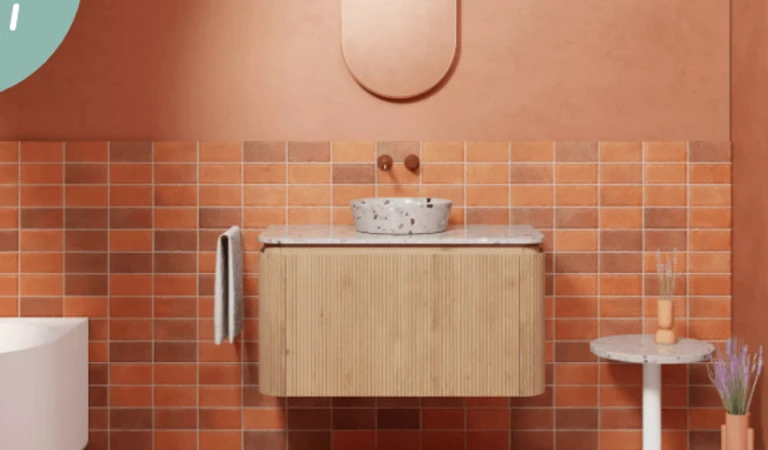 In je badkamer wil je ontspannen. Organische vormen, aardse tinten en natuurlijke materialen creëren een rustgevende, serene sfeer. In 2025 zien we veel zachte kleuren, zoals beige, champagne en terracotta, en natuurlijke materialen als natuursteen, terrazzo en licht hout. Zoals in dit badkamermeubel hout. Rechte hoeken maken plaats voor zachte, vloeiende lijnen en vormen, zoals in deze organische spiegel. Met deze trend maak je van jouw badkamer een warme oase van rust.