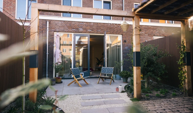 ‘We woonden altijd heel fijn in het Oostelijk Havengebied in Amsterdam, waar we een maisonnette met twee slaapkamers hadden. In coronatijd merkten we door het thuiswerken toch wel dat we wat ruimte tekortkwamen. Ons bureau stond in de woonkamer. Ook een tuin leek ons wel fijn.