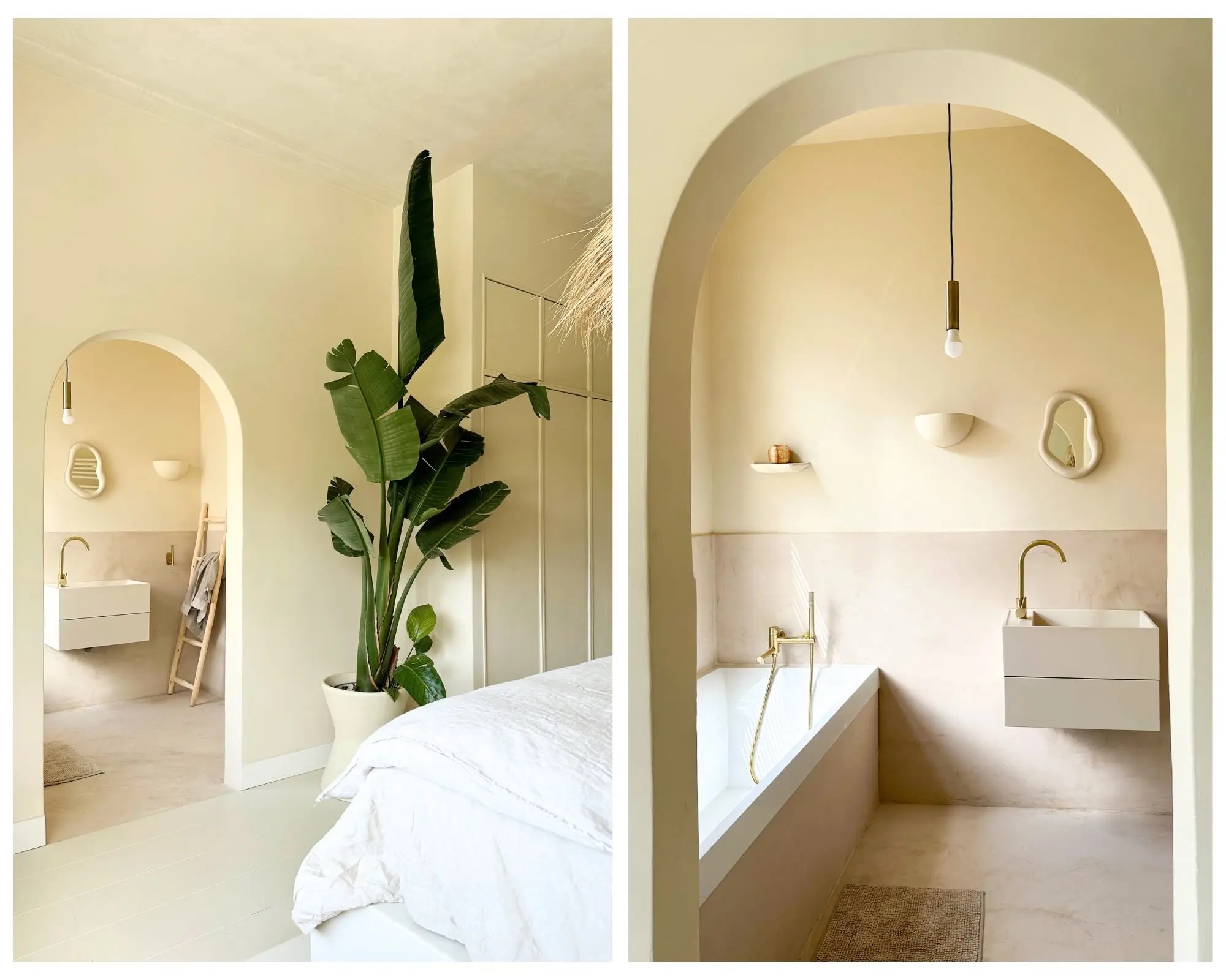 Is het mogelijk om bij jou thuis een verbinding te maken tussen de slaapkamer en badkamer? Breek dan een muurtje door en maak een boogje boven de doorgang, voor het ultieme wellnessgevoel.