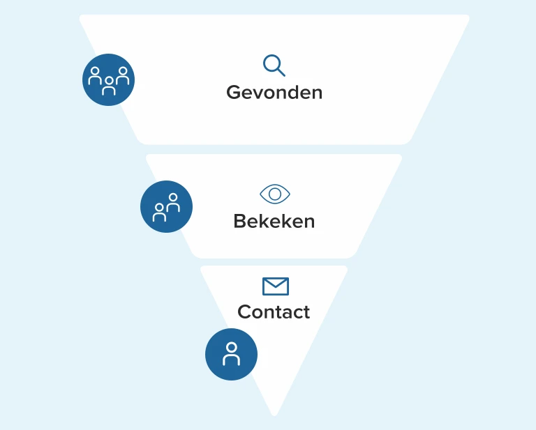 De statistieken zijn een weergave van een online funnel op funda in business. Deze denkbeeldige trechter geeft weer hoe een bezoeker verandert in een contactaanvraag (lead) voor de makelaar. Dit proces heet converteren. De funnel op funda in business kent drie stappen die u per object kunt selecteren in de funda desk: Gevonden, Bekeken en Contact.