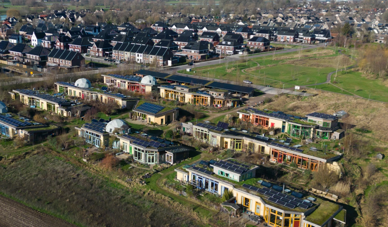 Met ’we’ bedoelt hij de ecologische wijk in het Overijsselse Olst, die bestaat uit 23 huizen en een gemeenschappelijk gebouw: het Middenhuis. Een gemeenschap van aardehuizen is uniek in Nederland en zelfs in Europa. Het heeft een extra voordeel, volgens Ferdi: ‘Je deelt de energie en voorzieningen en bent gezamenlijk verantwoordelijk voor onderhoud en beheer.’