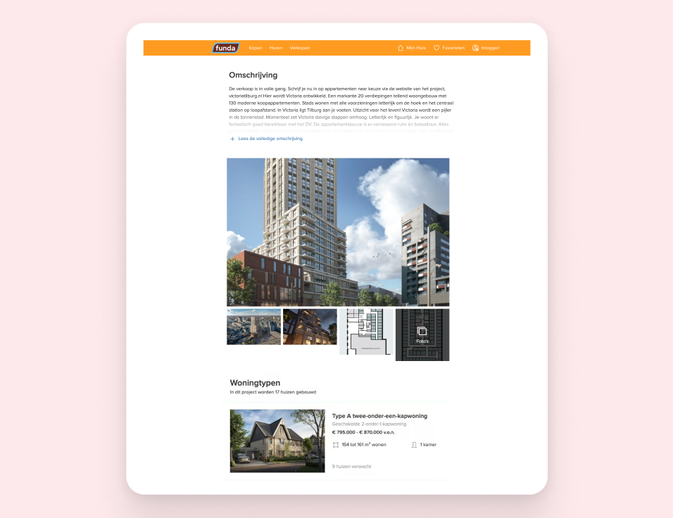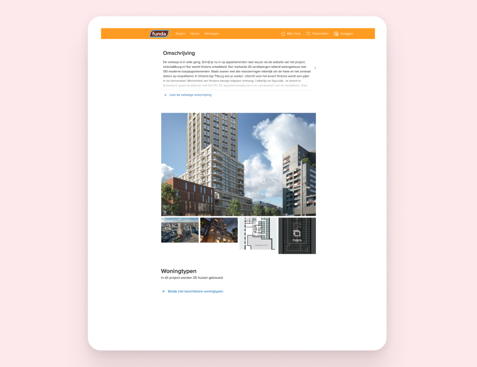 Nieuwbouwprojecten die zich in de voorbereidingsfase bevinden, werden niet altijd optimaal gepresenteerd op Funda. Zonder gekoppelde objecten dachten zoekers mogelijk dat het project al volledig uitverkocht was. Ook was niet duidelijk te zien welke woningtypen het project omvatte. Daarom is de presentatie van nieuwbouwprojecten in voorbereiding verbeterd.