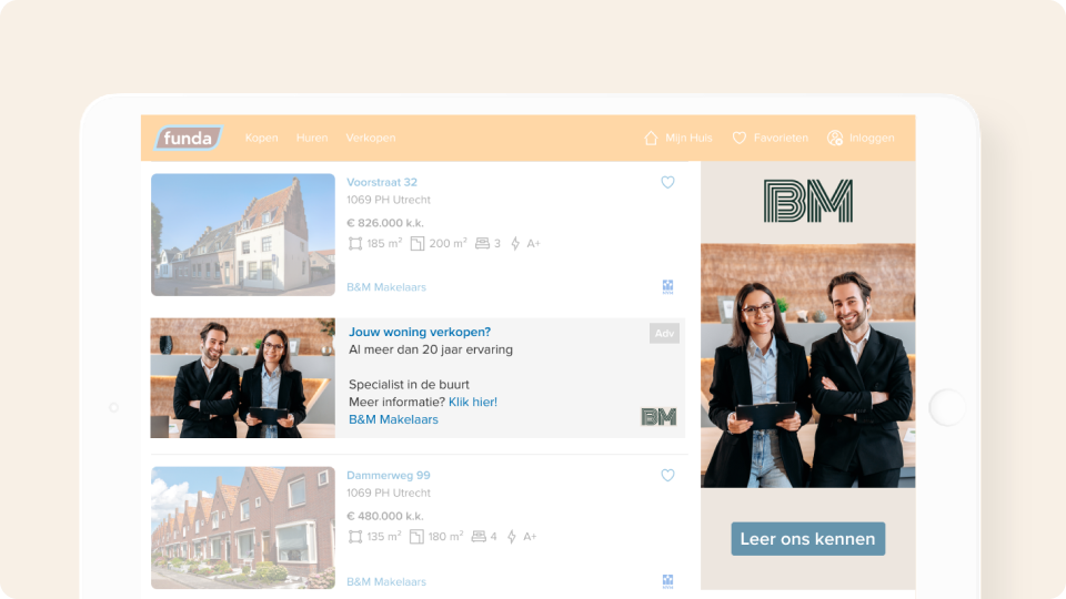 Met meer zichtbaarheid vergroot je je naamsbekendheid en ben je top-of-mind op het moment dat een consument een makelaar kiest. Wij helpen bij het vormgeven van een campagne voor jouw kantoor.