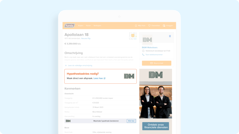 Laat ons weten wat je wil bereiken met Funda. Onze consultants denken graag vrijblijvend met je mee over de beste aanpak.