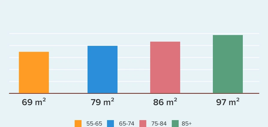 De woonruimte staat bij de meeste 55-plussers op de eerste of tweede plek, gevolgd door de (woon)keuken en slaapkamer. De hobbyruimte scoort lager, maar is voor hen belangrijker dan voor jongeren.