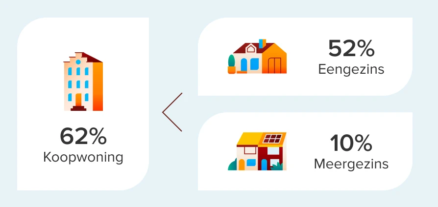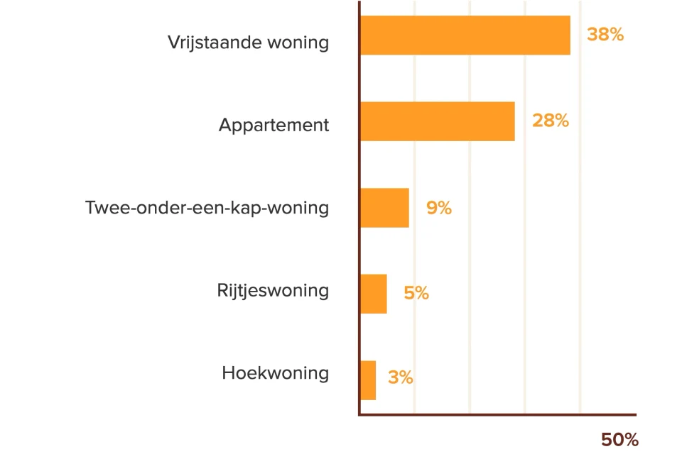 55-plussers zoeken relatief vaak een vrijstaand huis of appartement. Andere woningtypen, zoals rijtjes- of hoekwoningen, worden minder vaak genoemd.