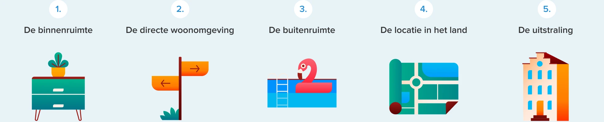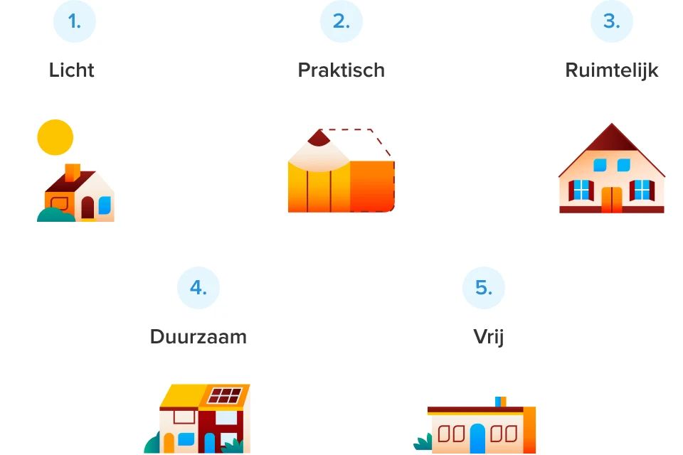 Kies maximaal vijf van de volgende termen die je aanspreken voor jouw woning.