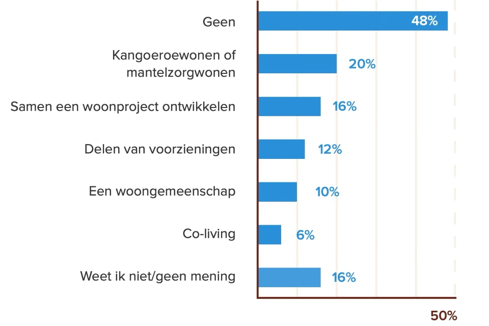 Voor welke van de onderstaande woonoplossingen of gedeelde voorzieningen sta jij - nu of in de toekomst - open?