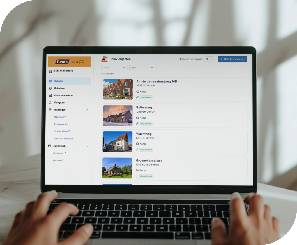 Een nieuw en verbeterd systeem waarmee het beheer van je objecten* en kantoor op Funda makkelijker wordt dan ooit.