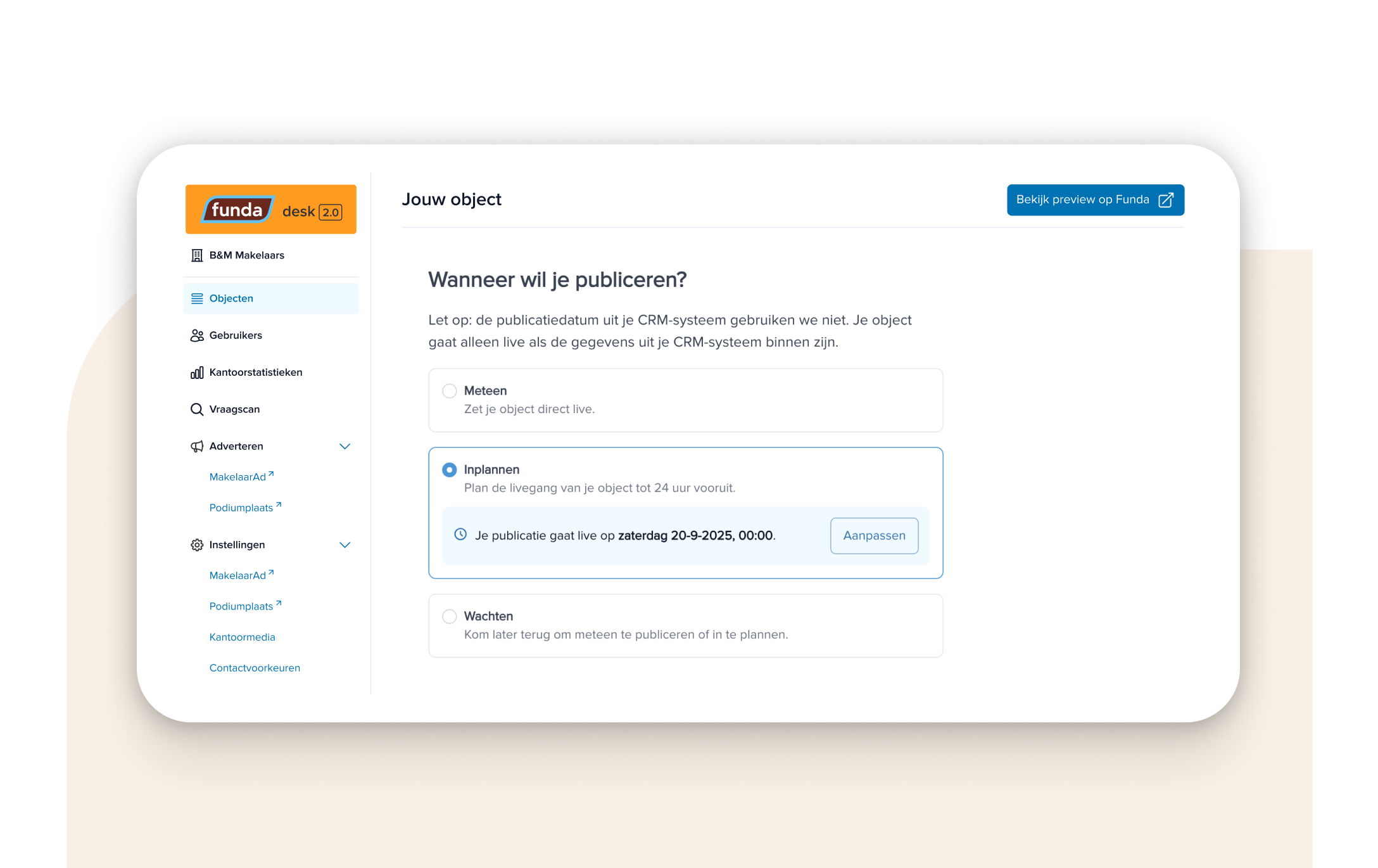 Funda werkt continu aan het verbeteren van het platform op basis van data, jouw feedback en inzichten. Met als doel jouw makelaarskantoor en objecten beter te laten presteren op Funda. Bekijk op deze pagina alle relevante updates op Funda, in Funda Desk en op Funda in Business.